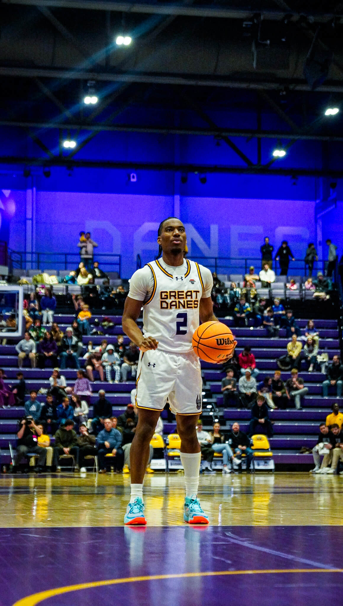 The game began in familiar fashion for the Great Danes, as Vermont opened on an 11–2 run and controlled the early tempo. The Catamounts extended their lead to 16–8 with 12:02 remaining in the first half, leaning heavily on Gus Yalden (#19), who dominated the paint and showcased impressive court vision, including a Joker-esque assist that energized the Vermont bench.
